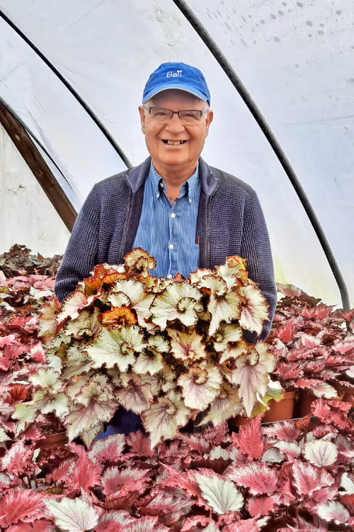 About The Breeder: PlantSmith Founder Gary Crook started in Horticulture at DuPage Horticultural School in 1969. His experience working at various well-known large growers led him to start his own business in 2006, PlantSmith Nursery. Creating a niche for himself in the marketplace, Gary sought plants that no one else was growing to set himself apart from other local greenhouses. He chose Rex Begonias and decided to start his own breeding program, which ended up “addicting and a whole lot of fun!”