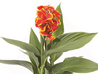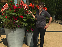 Canna Cannova Red Golden Flame is a great choice for landscapes in full sun. It provides a very tropical look in a HOT summer color. It works amazingly as a tall thriller in mixed combinations, which Joan loves to use in the large combo containers featured in The Gardens. Joan created and planted these unique combo pots that are truly one-of-a-kind designs.