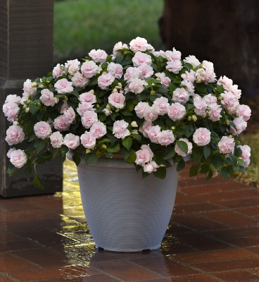 Glimmer™ Double Impatiens Series (Ball Seed exclusive) features beautiful rose-like blooms. Highly resistant to Impatiens downy mildew.