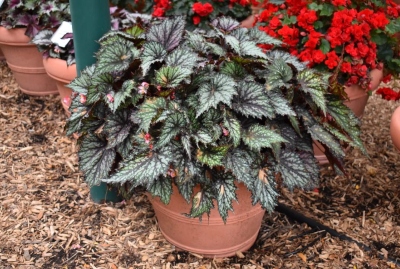 Best Begonia (Rex) –Jurassic Jr. Fire Spike “Plants make attractive mounds of dense and very colorful foliage. Grown mainly for foliage, it does have small pink flowers later in season that also complement the pink shades in the leaves. A great choice to bring color to shady areas while also being very low maintenance. The Jurassic Jr. series provides all the same beauty as the Jurassic series but with ~40% smaller foliage."