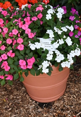 Best Impatiens, container –Beacon Portland Mix “Nice mix of colors brightened up the shade with abundance of flowers. Besides the obvious outstanding characteristics of uniform plants covered by many flowers, the Beacon series also provides high resistance to Impatiens downy mildew which can be devastating.”