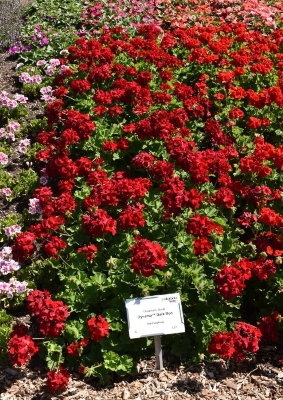 Best Geranium (zonal) ground –Dynamo Dark Red “Flowers have an intense shade of dark red and it was noted that there was nothing else quite like it in the trial. Plants were bred to have medium vigor and filled out nicely with a very uniform growth habit. Flowers were both striking because of their color but were also very prolific and created a high degree of flower power.”