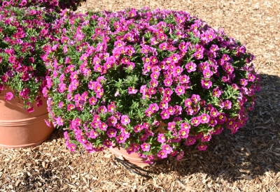 Best Calibrachoa –Bumble Bee Hot Pink “From a distance it was impressive all season with good vigor, a great rounded habit and a blanket of bright pink flowers covering the container. Up close, the hot pink blooms stand out with a star-burst pattern of yellow in the center and throat.”