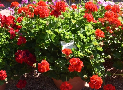 Best Geranium, container –Sunrise Brilliant Red 23 “Flowers were abundant with a bright shade of scarlet/red blooms. Plants had a great vigor and produced many large flowers. The medium green foliage was reminiscent of “grandmother’s geraniums.”